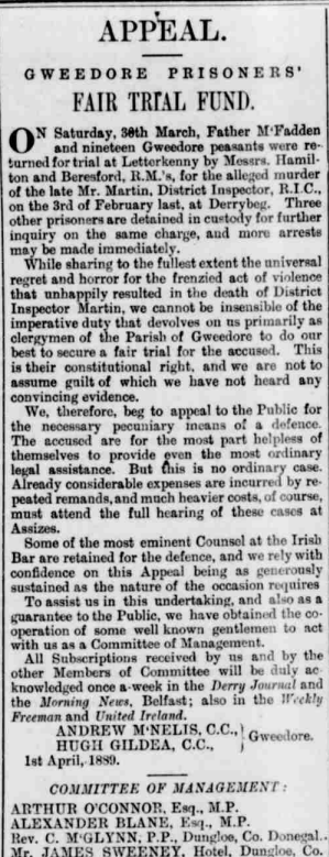 Clipping below from the Derry Journal, 24 April 1889: