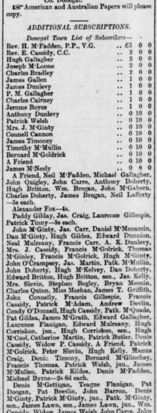 In 1887, Connell Cannon, cattle-dealer, Donegal, was listed as a subscriber to the Gweedore Prisoners Fair Relief Fund.